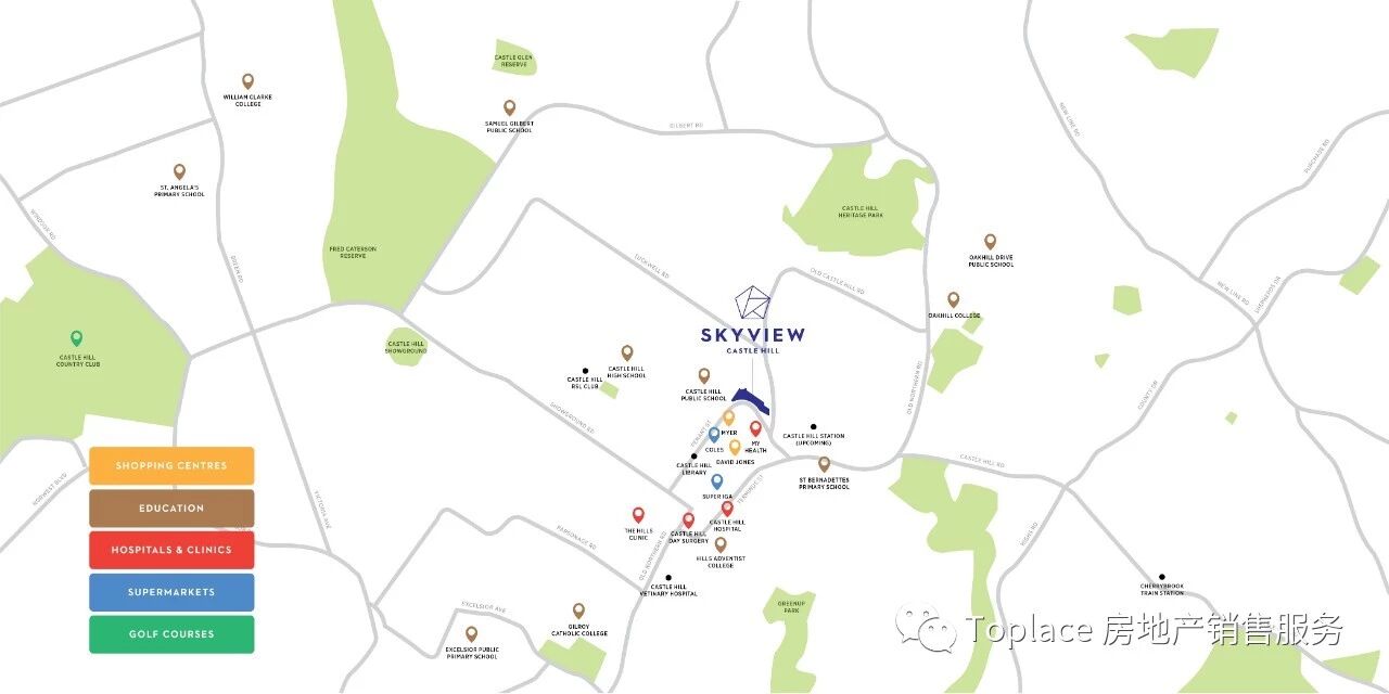 Castle Hill 位于悉尼西北方向,地理位置优越,距离悉尼市中心30.1公里。目前是联邦政府和新州政府大力发展的重点区域之一。